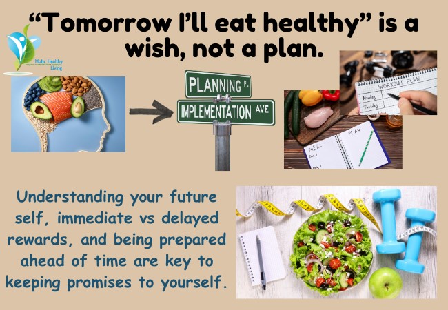 Ever wonder why we promise ourselves things like “tomorrow I’ll start exercising and eating only healthy foods”, but don’t follow through? People make those heartfelt